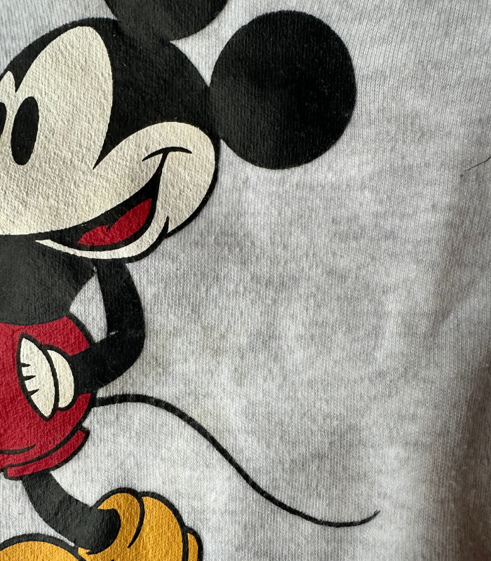 Babygrow estilo pijama do Mickey com mancha visível na foto.