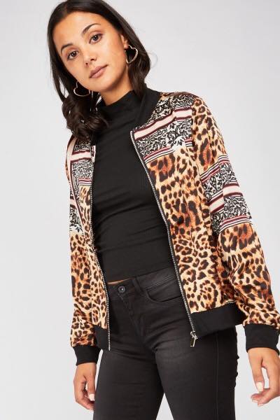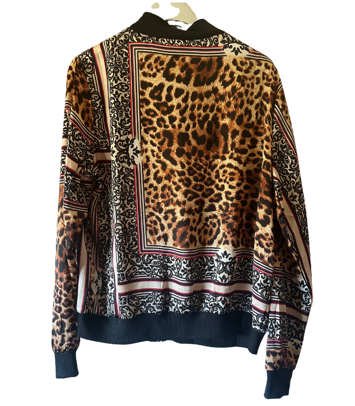Casaco Bomber fino, ideal para dias frescos de Verão, com padrão leopardo.