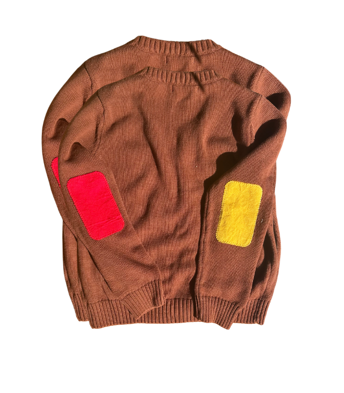 Casaco de malha castanho com bolsos coloridos da marca Carnivalkids