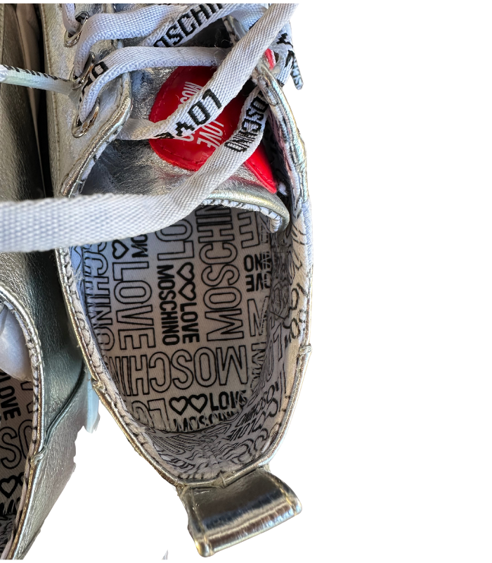 Sapatilhas novas, nunca usadas, prateadas da marca Love Moschino.