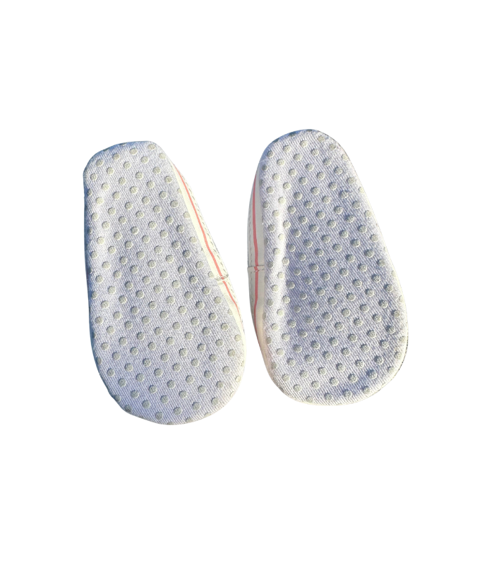 Sapatos cinza com brilho rosa para primeiros meses do bebé.
