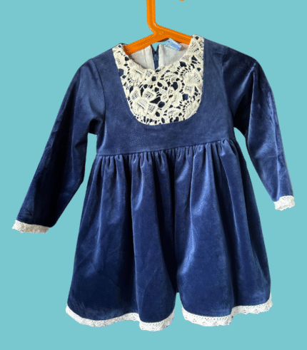 Vestido de cerimónia em veludo azul e com renda – SARDÓN – 36 meses