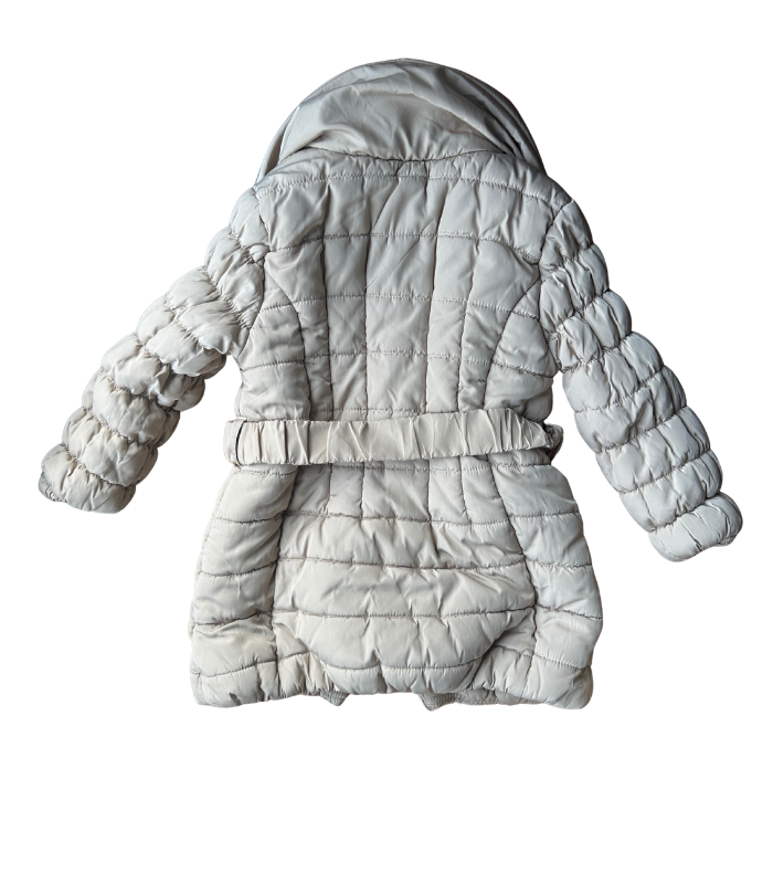Sobretudo bege comprido alcochoado e com cinto da marca Miranda. Perfeito para meninas.
