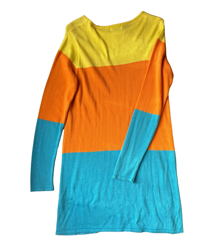 Vestido de malha às riscas coloridas da marca Ruga. Também pode ser usado como túnica.